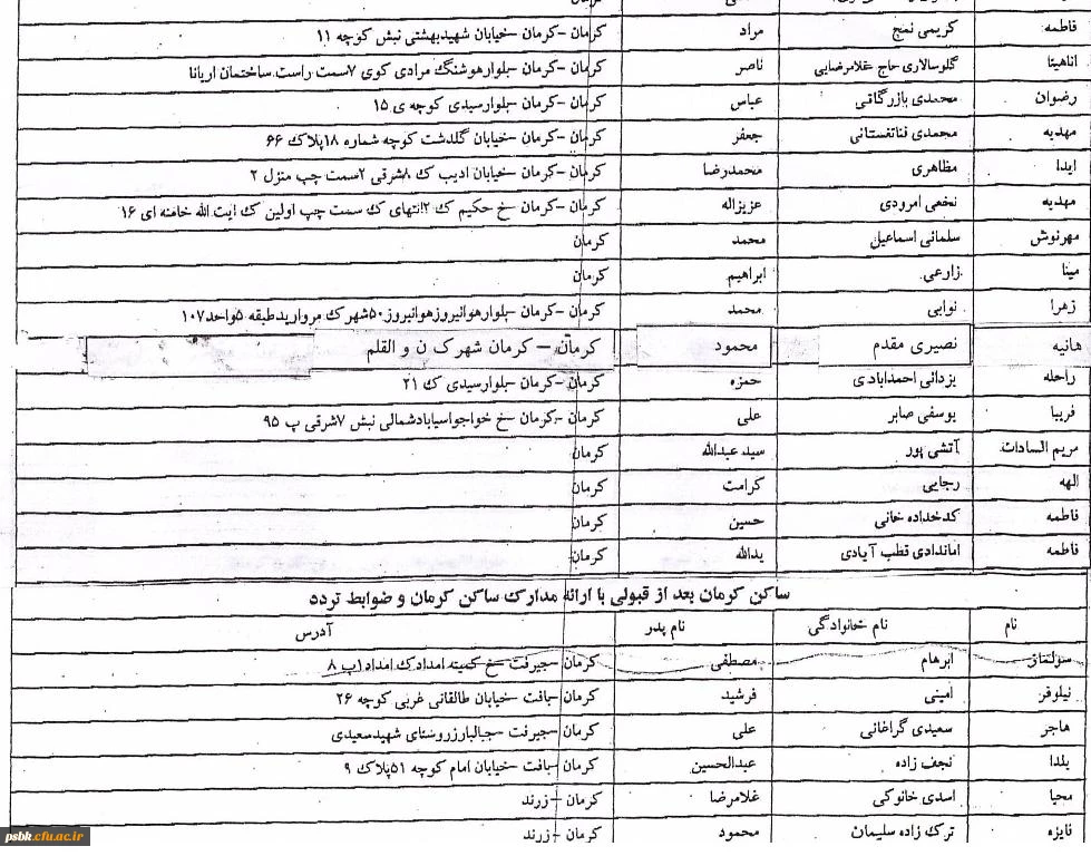 اسامی دانشجویان انتقالی از پردیس زاهدان به پردیس شهید باهنر کرمان