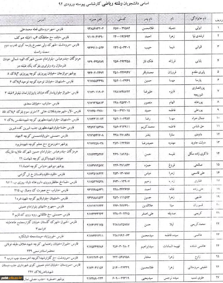 اسامی دانشجویان انتقالی از پردیس زاهدان به پردیس شهید باهنر کرمان