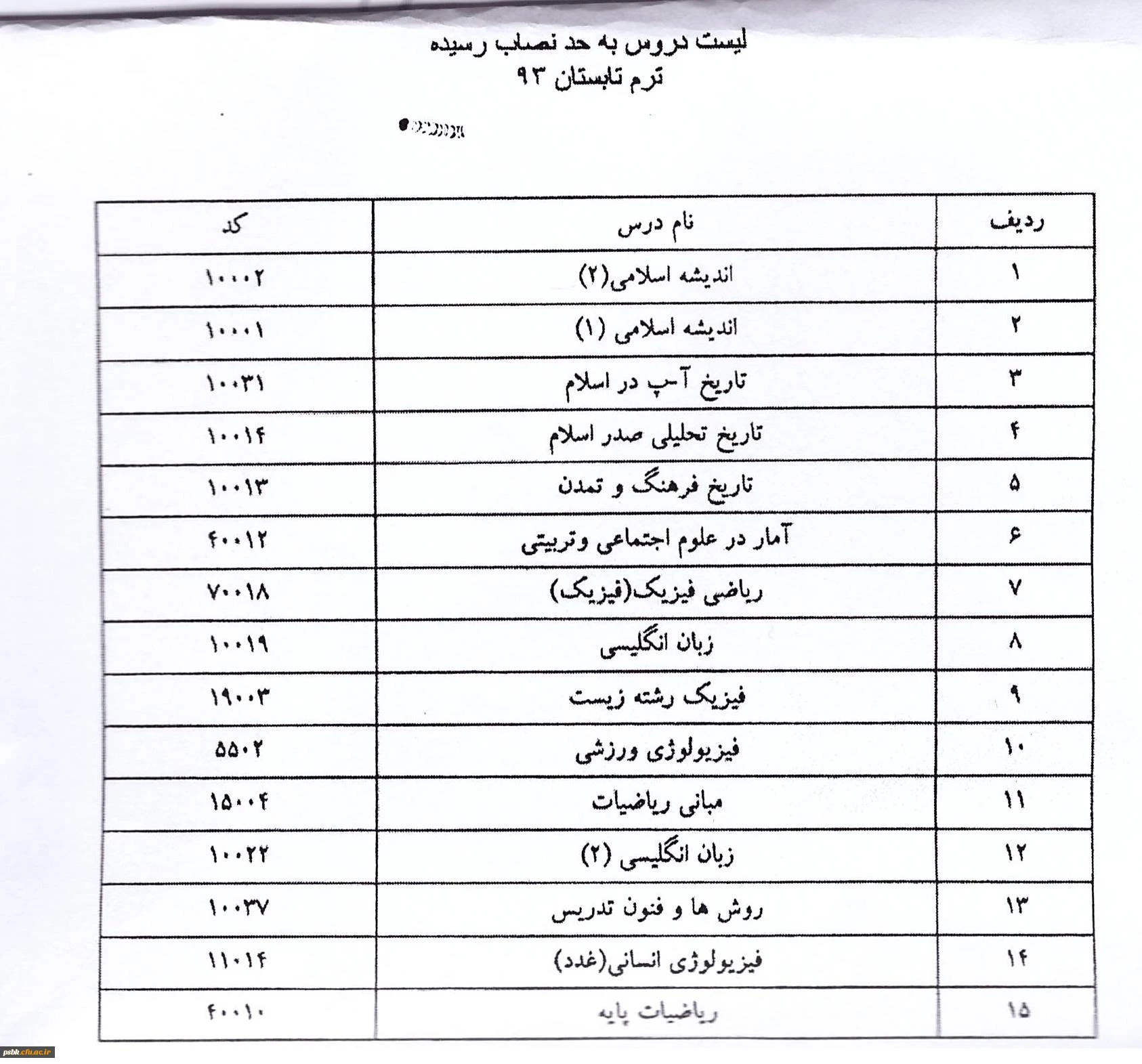 لیست دروس به حد نصاب رسیده ترم تابستان 93